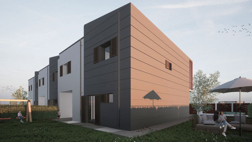 Il progetto prevede tre immobili affiancati, ognuno dotato di cortile e autorimessa, dalle volumetrie squadrate e costruiti con un eccellente classe energetica.